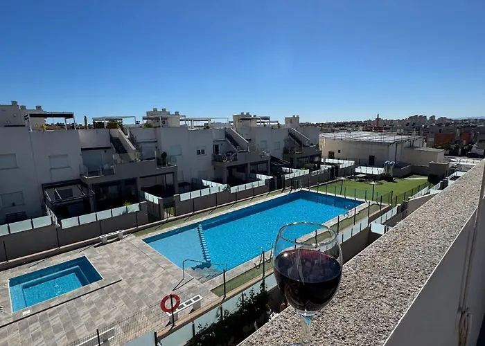 Situé à moins de 25 minutes à pied du Parc aquatique Flamingo, Pink Lagoon View Apartment Torrevieja spacieux offre à ses clients le Wi-Fi, que ce soit pour les affaires ou les loisirs. La résidence a une terrasse avec vue sur la piscine.